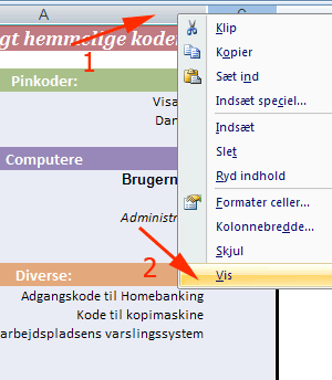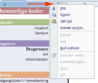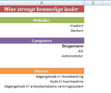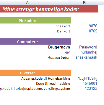 Et Excelark kan benyttes til at gemme en oversigt over hemmelige data - fx