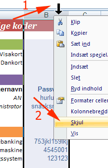 Herved skjules kolonne B |