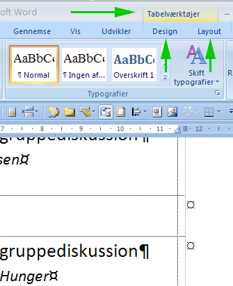 Bemærk: Fanen Tabelværktøj er kun tilgængelig når