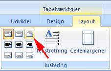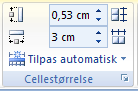 Tabelværktøj | Layout | gruppen Cellestørrelse