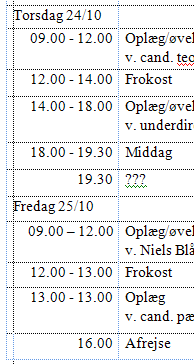 hvis den havde været fremstillet som en normal tabuleret tekst. Det er